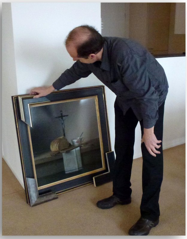 Contact met Peter bracht uitkomst: hij zou met het schilderij (en met wat mogelijkheden om eventueel een andere lijst er om te zetten) naar deze woning komen. En zo geschiedde op 16